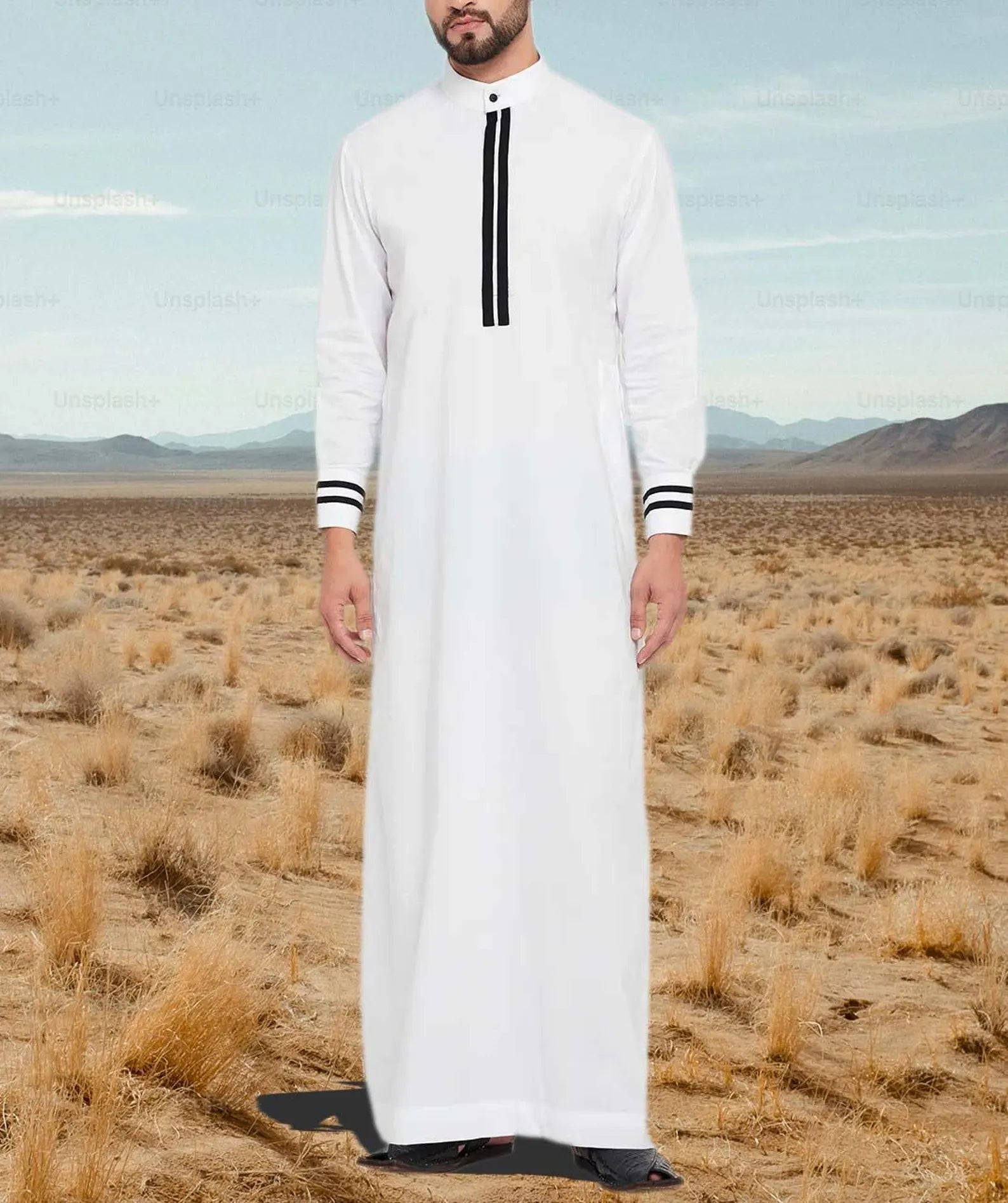 White Men Emirati Thobes Jubbah Arab Thobe Contrast Black Piping Galabiyya Islamic Wear Islamic Muslim Wear Robes for Men Eid Special Wear